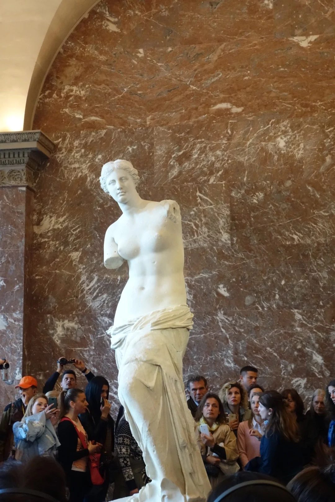 Since it was now about 2:00 PM and rain clouds were visible, we got in a the surprisingly short (and by short I mean the notch under massive) line to enter the museum. We got into the museum in 20 minutes and made our way to the museum’s MVP, the Mona Lisa. It’s incredible the thousands of pieces of art that people were passing without even glancing, all because they were rushing to the Mona Lisa—so we tried to be a bit more observant until we made our way into the jammed pack room holding the famous painting.
