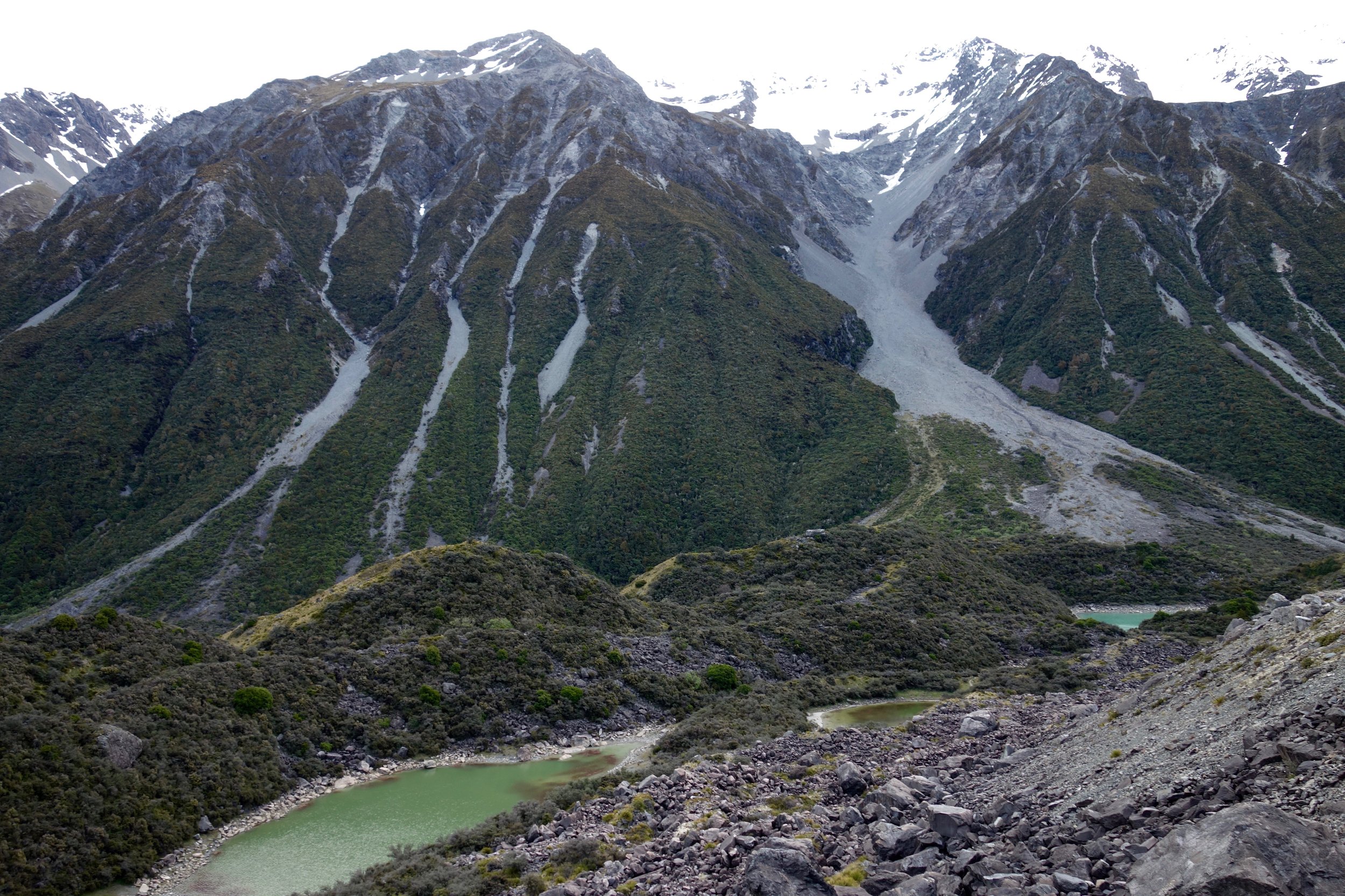 That in the middle there is the Tasman Glacier, which melts into the Tasman Lake.
